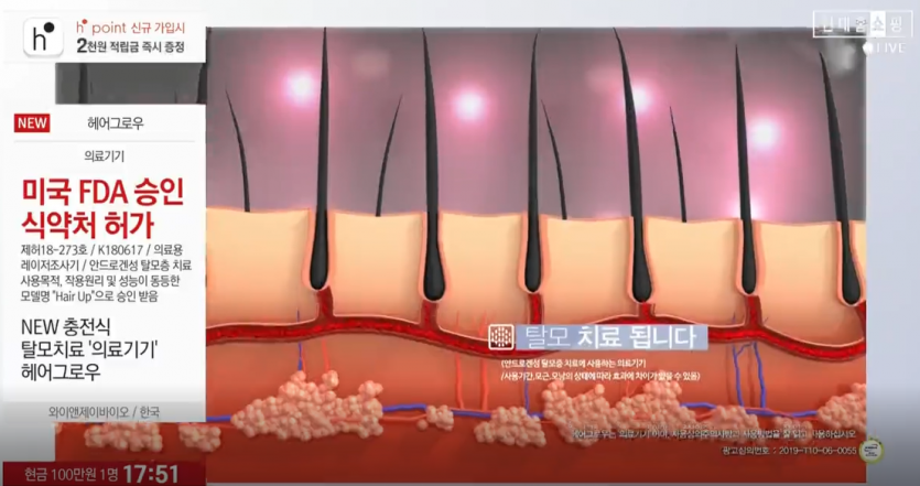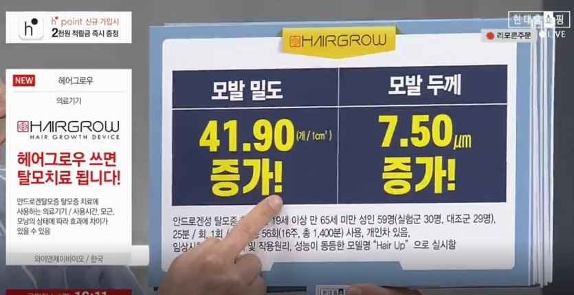 탈모치료기기 ‘헤어그로우’가 2019년 4월 8일(월) 20시 40분 현대홈쇼핑을 통해 론칭했습니다.