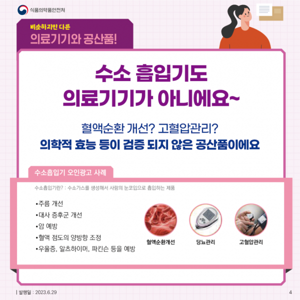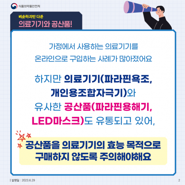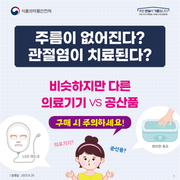 의료기기와 유사한 공산품도 유통되고 있어, 공산품을 의료기기의 효능 목적으로 구매하지 않도록 주의해야해요!