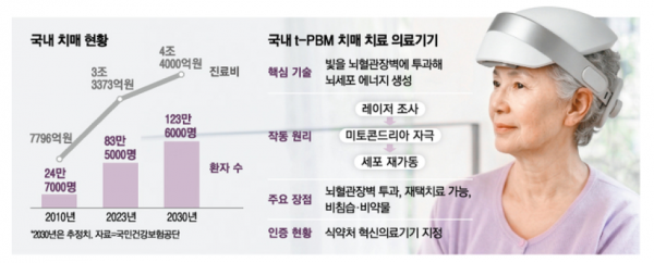 당사가 개발 중인 t-PBM 기기를 매일경제가 보도를 하였습니다. 이 기기로 50~90세 MCI 환자를 대상으로 진행한 임상시험 결과를 보면 유효성을 수치로 입증했다는 평가를 받고 있습니다. K-MoCA에서 기기를 사용한 시험군은 그렇지 않은 대조군 대비 평균4.61점 높은 점수를 기록했습니다. 치매 선별에 쓰이는 간이정신상태검사(K-MMSE) 결과에서도 시험군의 점수는 평균 2.64점 상승한 반면, 대조군은 0.13점 오르는 데 그쳤습니다. 현재는 식약처로부터 혁신의료기기 지정을 받았고, 신개발의료기기 허가 심사 절차를 밟고 있습니다. 곧 고객과 만날 수 있도록 준비를 하겠습니다. 감사합니다.